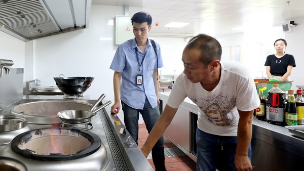 27日下午,在硚口區(qū)華生城市廣場(chǎng)三期的麗景漢廣幼兒園食堂,天然氣公司工作人員對(duì)幼兒園燃?xì)馐褂们闆r進(jìn)行檢查,食堂負(fù)責(zé)人王師傅說(shuō):“天然氣效率高,還安全,足可以保障我們?yōu)樗陌俣嗝麕熒磿r(shí)出餐。”據(jù)幼兒園負(fù)責(zé)人韓女士介紹,該園是一所站地6000平米的大型幼兒園,將為周邊區(qū)域提供400個(gè)學(xué)位,這是該幼兒園在武漢的第三個(gè)園區(qū),之前出于環(huán)保、便捷、高效、節(jié)能的需求,所有分園都是選擇天然氣作為餐廳能源。